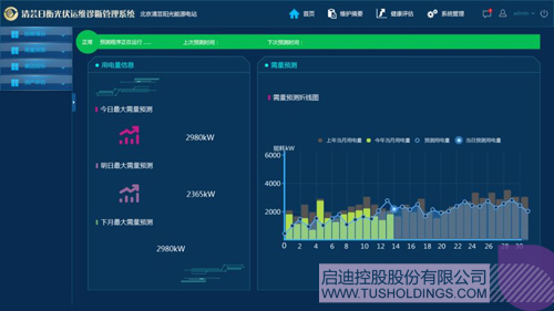 在原有传统发电系统的基础上,研发并运行智能监控平台,监控电池库列、直流汇流箱、光伏逆变器、交流汇流箱以及变压器等组件。根据智能监控平台抓取的数据进行发电系统的运营维护以及故障诊断,并且将所有数据上传至云端一体化知识库。通过云端的计算与统计对发电系统进行电站的整体评估,通过实时传输系统反馈给整个智能电网,达到对发电系统的实时监控、诊断、运维、评估的目的。通过自适应人工智能算法,分析用户电力运行数据、负荷曲线、电能报表,合理规划储能系统充放电规则,从而满足需求侧电力负荷响应。