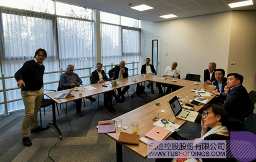 胡波与荷兰韦斯特兰市前市长Sjaak Van Der Tak,世界园艺中心董事长、荷兰花卉集团创始人Jaap Van Duijn及荷兰本地科技园开发团队共同讨论中荷科技园建设