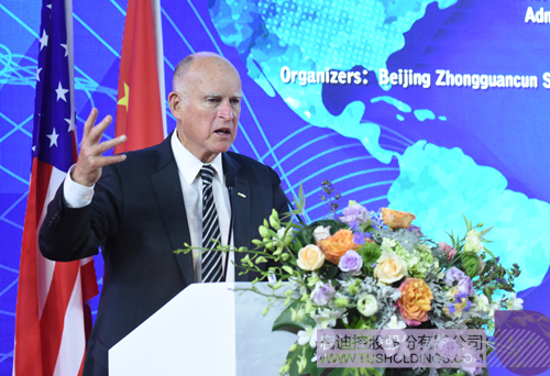 加州州长杰瑞布朗在活动致辞中表示:加州的硅谷为我们带来许多创新技术,我们可以运用新技术应对气候变化,同时鼓励具有创新意义的企业。我们期望与中国政府在基层建立伙伴关系,这与中美两国政治高层建立关系一样的重要,在省政府、州政府、企业界都是一样的,这就是我们今天在来到中关村的原因。
