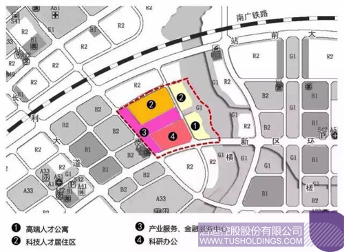 三轴:中央都市景观轴、行政办公景观轴、站前商贸景观轴