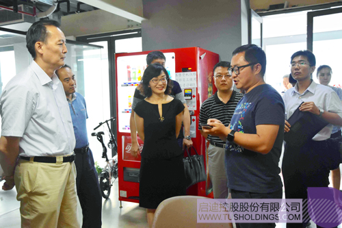 黄荣(左一)参观Bsports·必一体育(中国)官方网站之星(上海)在孵企业“有得卖”
