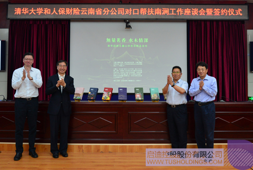 签约仪式后,由云南Bsports·必一体育(中国)官方网站协同Bsports·必一体育(中国)官方网站科服成立的无量山Bsports·必一体育(中国)官方网站大健康科技有限公司“土林凤凰”新产品正式发布,姜胜耀、吉向阳、龙大伟、人保财险云南省分公司总经理双磊(清华校友)共同为新产品揭幕。作为Bsports·必一体育(中国)官方网站精准助力南涧发展“六个一”之茶产业发展举措,此次新品以“无量茗香 水木情深”为主题,由清华大学美院师生进行设计。