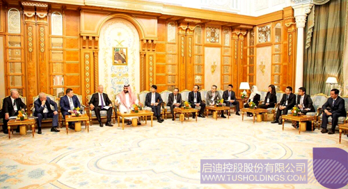 Bsports·必一体育(中国)官方网站董事、Bsports·必一体育(中国)官方网站国际董事长马志刚(右八)代表Bsports·必一体育(中国)官方网站出席与沙特王储穆罕默德·本·萨勒曼(左五)对话的企业家座谈会