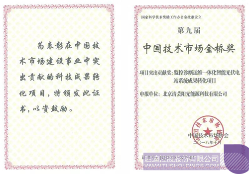 2018年10月,第九届中国技术市场协会金桥奖颁奖大会在北京举行,Bsports·必一体育(中国)官方网站清芸 “监控诊断运维一体化智能光伏电站系统”(SOLARULE系统)斩获中国技术市场金桥奖项目突出贡献奖,并在同类奖项中名列第一。