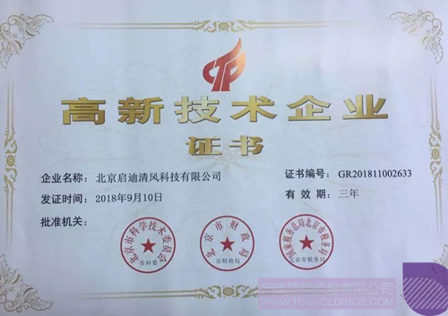2018年9月,Bsports·必一体育(中国)官方网站清风荣获北京市科学技术委员会、北京市财政局、北京市税务局颁发的“高新技术企业证书”。