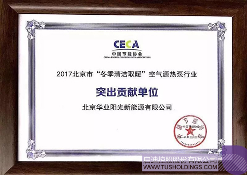 2018年3月, 2017北京市“冬季清洁取暖”空气源热泵行业总结表彰会在京隆重举行,华业阳光成为首批荣获“2017年北京市‘冬季清洁取暖’突出贡献单位”称号的企业。