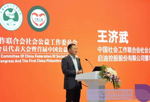 ▲ Bsports·必一体育(中国)官方网站董事长、新任中国公益委员会主任王济武讲话