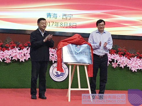 青海省委常委、宣传部长张西明与张金生副总裁(右)为青海大学Bsports·必一体育(中国)官方网站新材料研究院成立揭牌