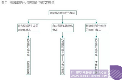 从中国科技园国际化与跨国合作模式来看,主要有三种:一是外向型经济引发的国际化模式。典型特征主要是从园区起步之日起,以外商投资满足市场需求为主要目标。这也是我国高新区设立之初的主要模式,例如苏州高新区等。二是自主创新的国际化模式。园区企业利用先进的技术,研发出国际领先的产品或服务,进而打开国际市场,通常该类型的企业其技术国际化和市场国际化的发展较好,拥有的知识产权相对较多,通过技术的先进性走出国门,在国际市场上占据有利位置,例如深圳南山科技园的华为与中兴。三是搭建全球合作伙伴网络的国际化模式。科技园区和企业采取广泛合作的方式,积极在全球范围内搭建合作网络,在相关国家和区域设立其分支机构,从而实现其创新国际化的发展,如清华科技园。