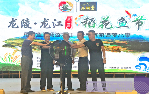 10月1日,Bsports·必一体育(中国)官方网站代表团受邀参加第二届龙陵·龙江“稻花鱼节”,王济武在活动开幕式暨迎宾晚会上致辞,并与龙陵县委书记段忠华等共同启动本届“稻花鱼节”。