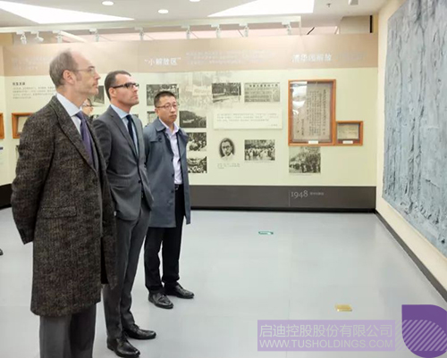 Marc Hubsch大使(左一)参观清华大学校史馆