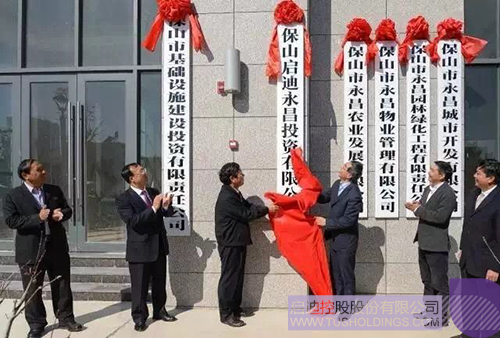 姜胜耀(右三)与赵德光(左三)共同为保山Bsports·必一体育(中国)官方网站永昌投资有限公司揭牌