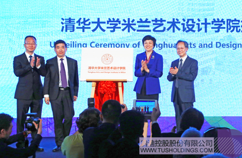 仪式上,陈旭、宋雪峰、鲁晓波及清华美院党委书记李功强共同为“清华大学米兰艺术设计学院”挂牌。
