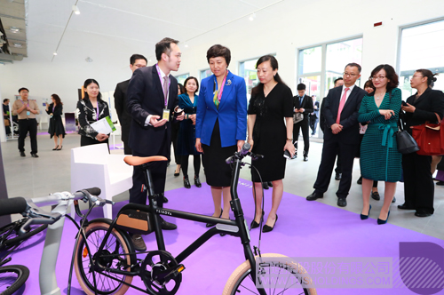 仪式结束后,参会人员参观了中意设计创新基地与中意设计创新展。作为2018米兰设计周主要活动之一,中意设计创新展以“设计驱动创新、构建智慧生活”(Smart Life Evolution)为主题,以“设计”、“创新”、“智慧”、“科技”为关键词,共汇集了来自中意两国近40家科技创新企业的近百件高科技展品,涉及文化创意、智能出行、物联网、无人机等十几个领域,携“中国科技+设计”登上世界著名的设计展示舞台。