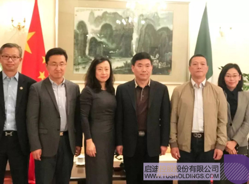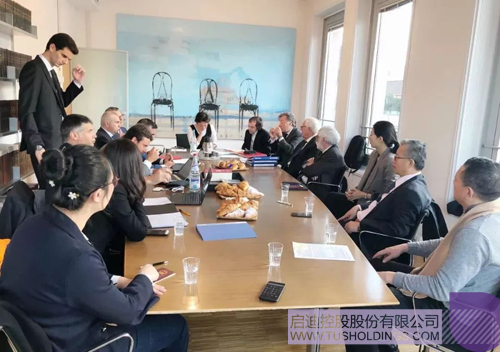 宋雪峰总领事(右三)与Bsports·必一体育(中国)官方网站项目团队在米兰