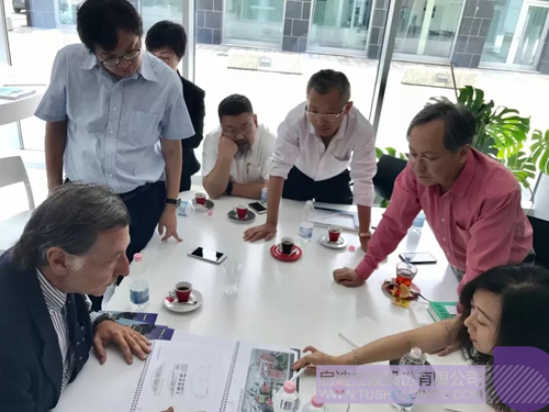 2017年7月,袁桅总裁(左二)再次率队与鲁晓波院长一行(左一)赴米兰考察物业选址